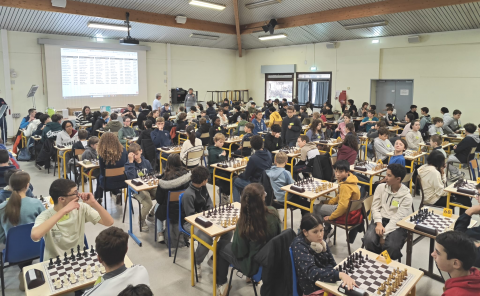 Mercredi 28 janvier 2026, notre équipe de 26 joueurs a participé au championnat scolaire des échecs, parmi les 151 collégiens du département. Cette édition a pu être accueillie par le lycée Aristide Bergès de Seyssinet-Pariset ; les élèves de primaire, encore plus nombreux que lors de la dernière édition (222 participants) jouaient quant à eux à l’Espace Robert Fiat de Saint-Égrève.